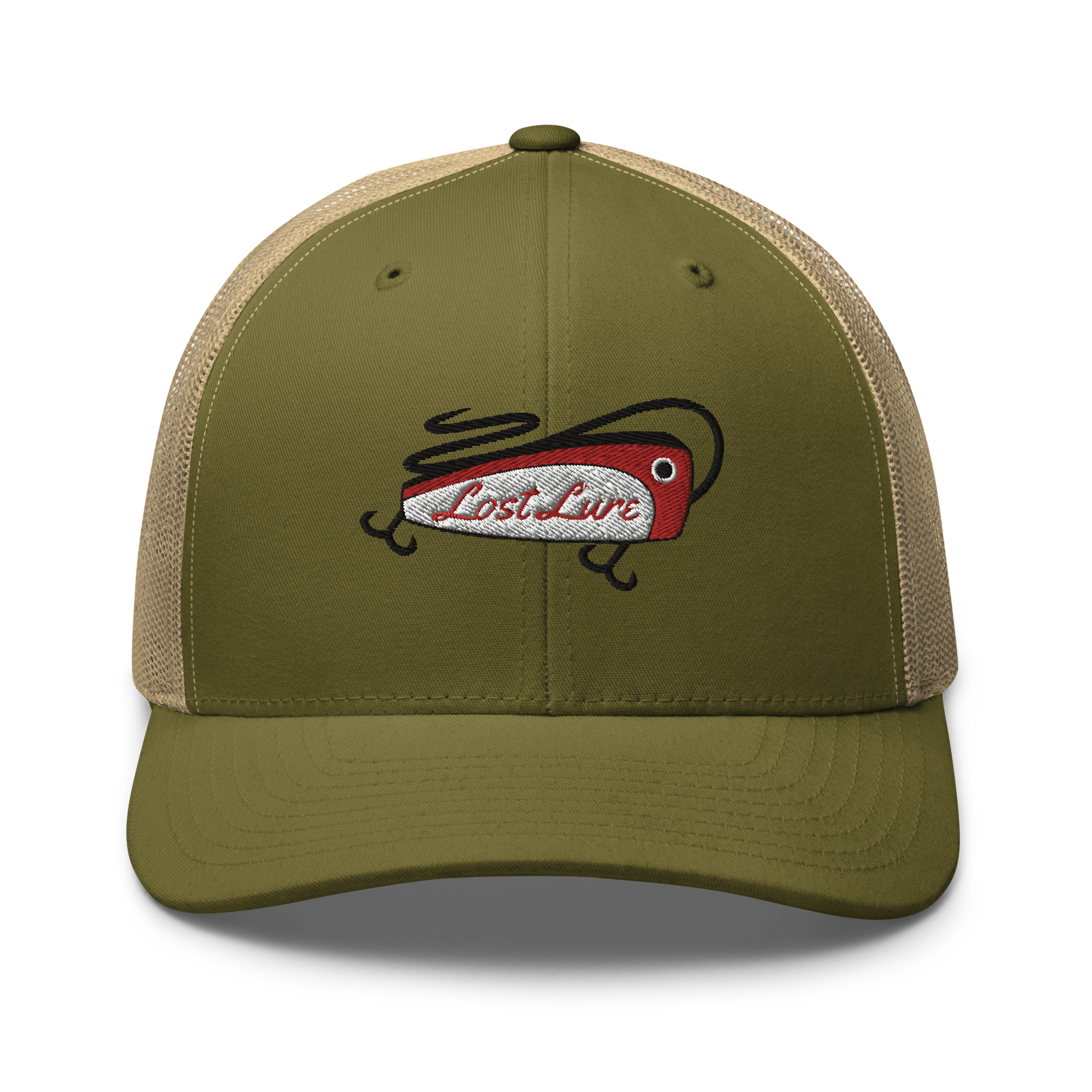 The Old School Lure Trucker Hat is a must-have accessory for any fishing enthusiast. This classic trucker hat features a unique design showcasing an old school red and white lure with "lost lure" written on it. The vintage-inspired design adds a touch of nostalgia to your fishing gear.